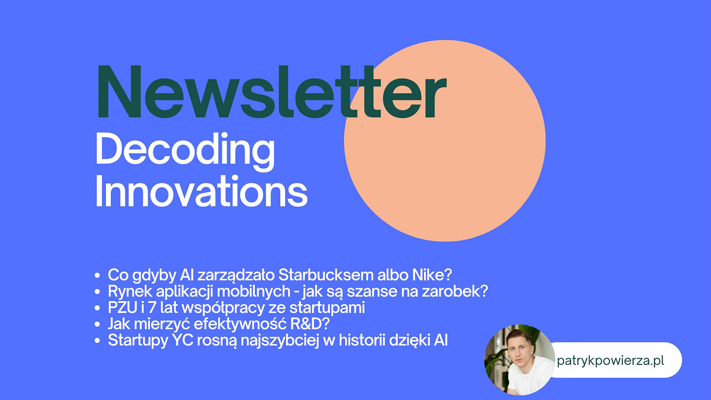 AI jako CEO, czy na apkach da się jeszcze zarobić, pzu i 7 lat współpracy ze startupami, efektywność R&D, startups YC rosną najszybciej w historii