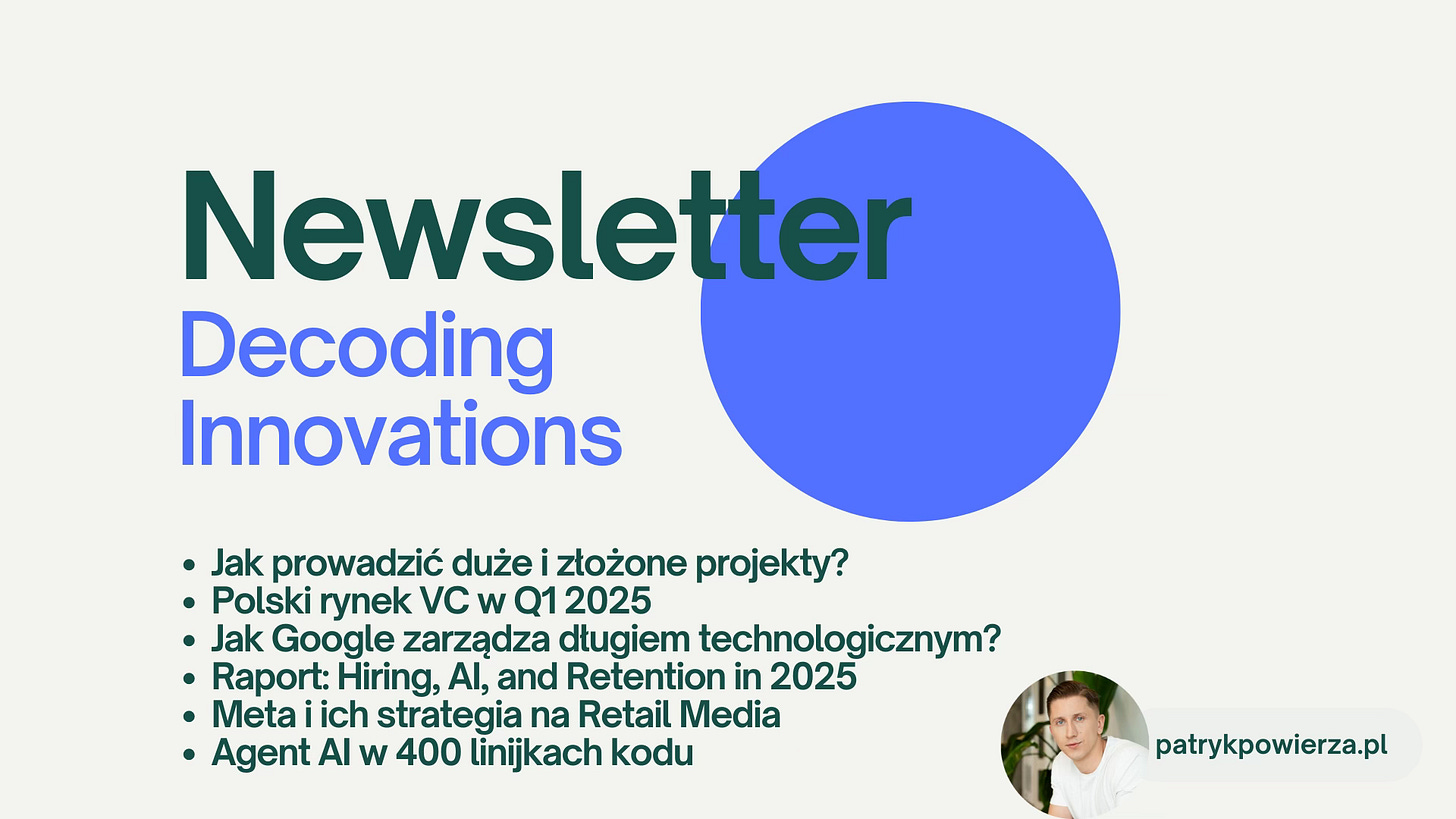 Duże i złożone projekt, Q1 w polskim VC, Google i dług technologicznym, Meta vs Retail Media, agent AI w 400 linijek kodu + DUŻO raportów.