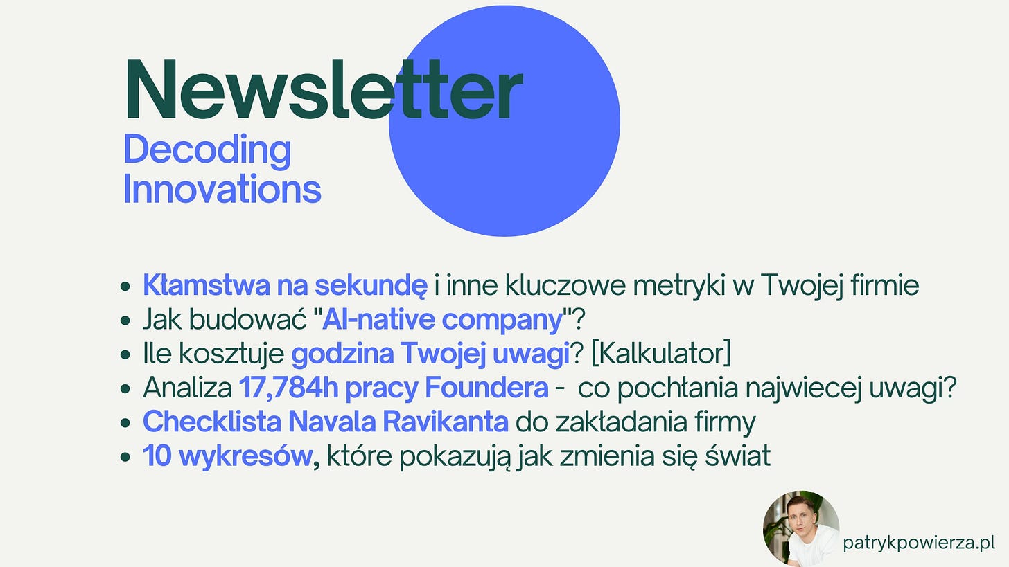 Kłamstwa na sekundę w Twojej firmie, budowa AI-native company, ile kosztuje godzina Twojej uwagi, 17,784h pracy Foundera, checklista od Navala, 10 super ciekawych wykresów
