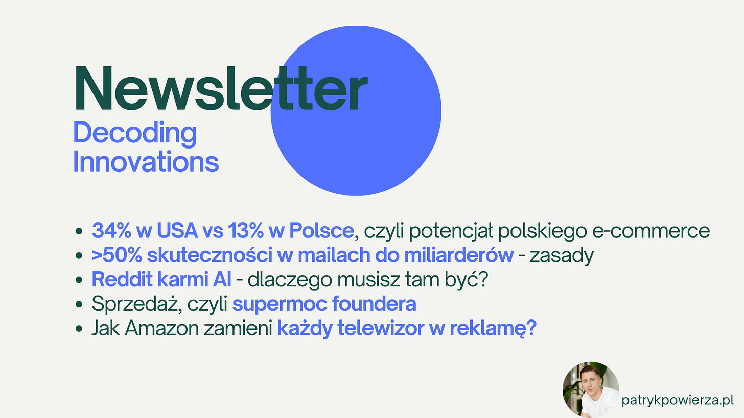 Potencjał e-commerce w Polsce, mail do miliardera, Reedit karmi AI, supermoc Foundera i magiczne urządzanie Amazona