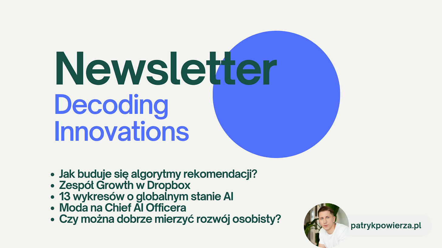 Algorytmy rekomendacji, zespół Growth w Dropbox, moda na Chief AI Officera, 13 wykresów o stanie AI oraz jak dobrze mierzyć rozwój osobisy?